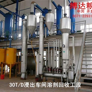 浸出設(shè)備(溶劑回收設(shè)備)油脂浸出設(shè)備溶劑回收,一般采用長管蒸發(fā)器、層蝶式汽提塔、列管式冷凝器或噴淋式冷凝器。其作用把萃取液中的產(chǎn)品與萃取溶劑分離開加以回收。