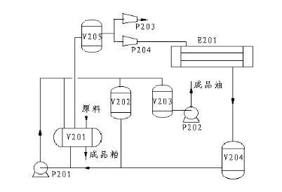 E201冷凝器 P201溶劑泵 P202成品泵 P203真空泵 P204壓縮機 V201浸出罐 V202混合液暫存罐 V203蒸發(fā)罐 V204溶劑罐 V205緩沖罐